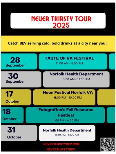 This family-friendly Halloween celebration is packed with fun, flavor, and festive vibes for kids of all ages. Come dressed in your costumes and enjoy an afternoon of safe trick-or-treating, games, music, and delicious BEV mocktails and signature drinks. It’s all happening right in the parking lot of a beloved local business in Portsmouth, VA.